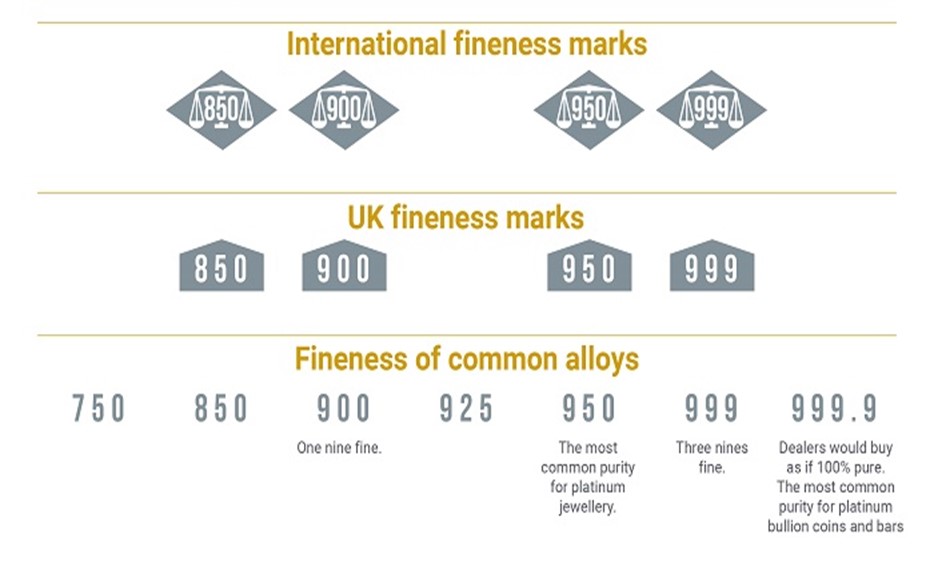 The image below should give a comprehensive idea for what stamps to look out in platinum hallmarks.